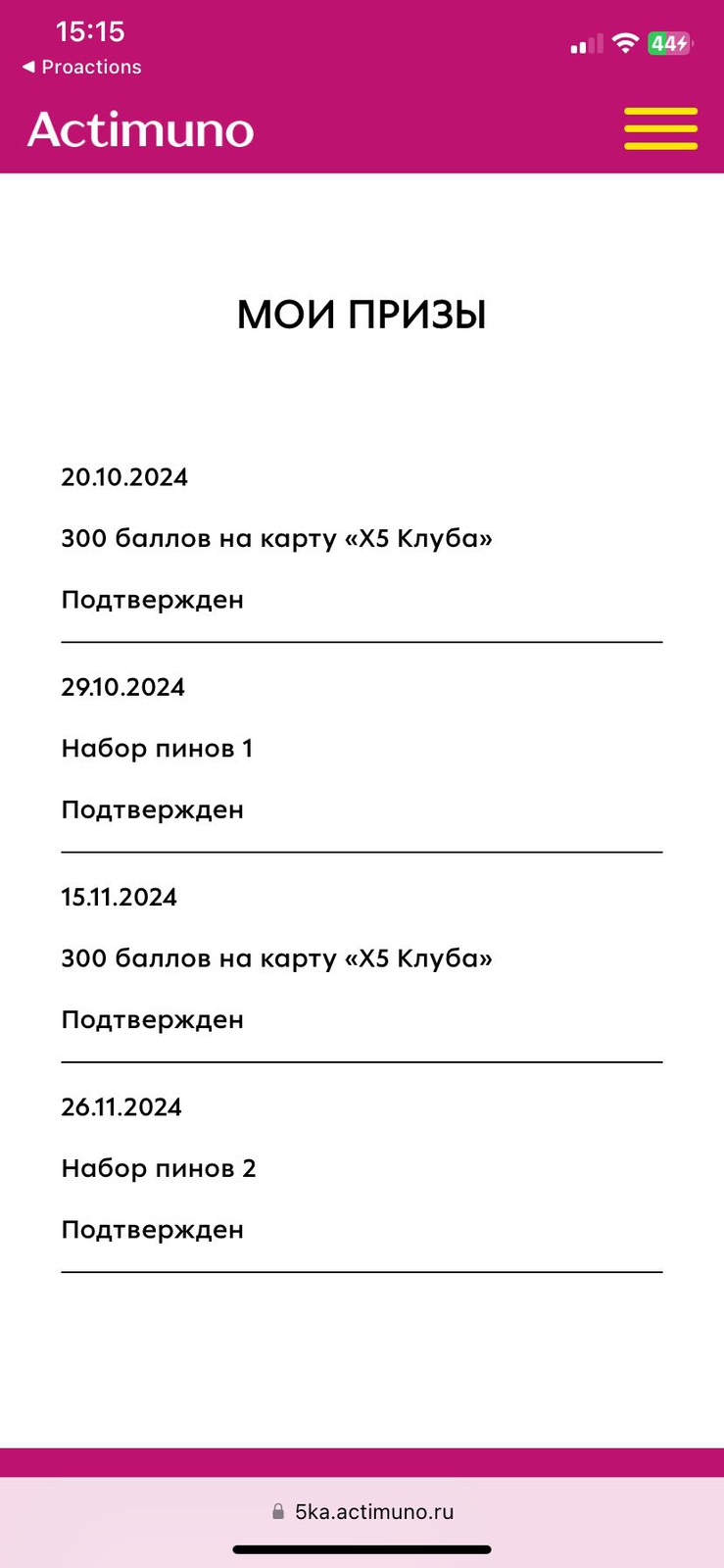 - Совершите покупку 4 или более единиц продукции Актимуно, участвующей в акции, в магазинах сети «Пятёрочка», при условии предъявления персональной карты Программы лояльности «X5 Клуб» Партнера до момента оплаты покупки;