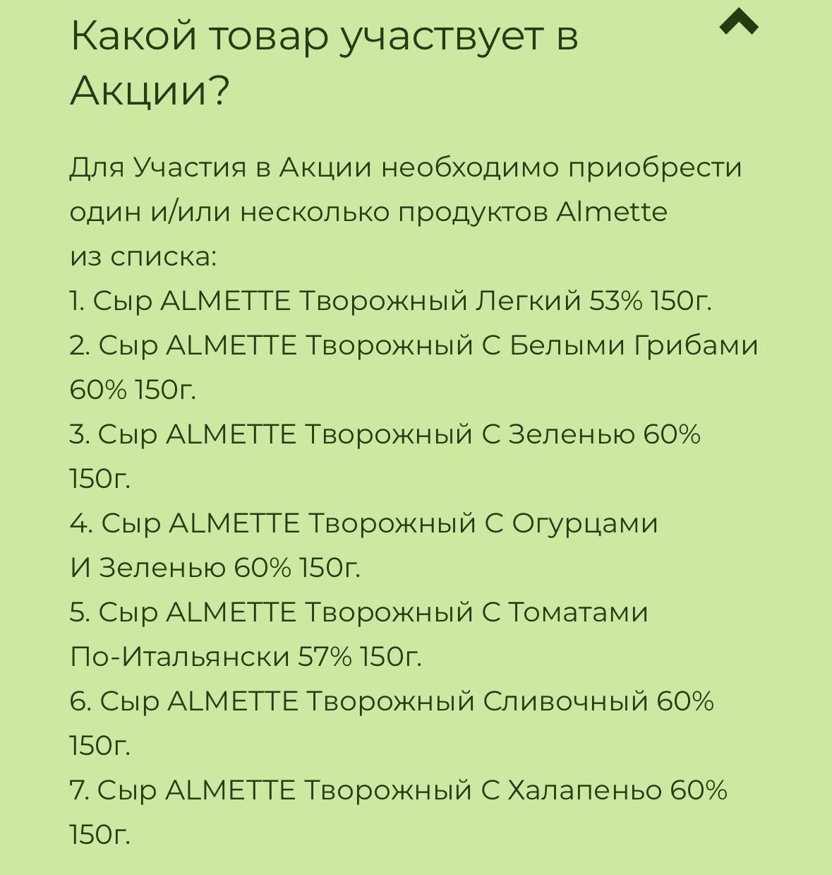 Для Участия в Акции необходимо приобрести один и/или несколько продуктов Almette из списка: