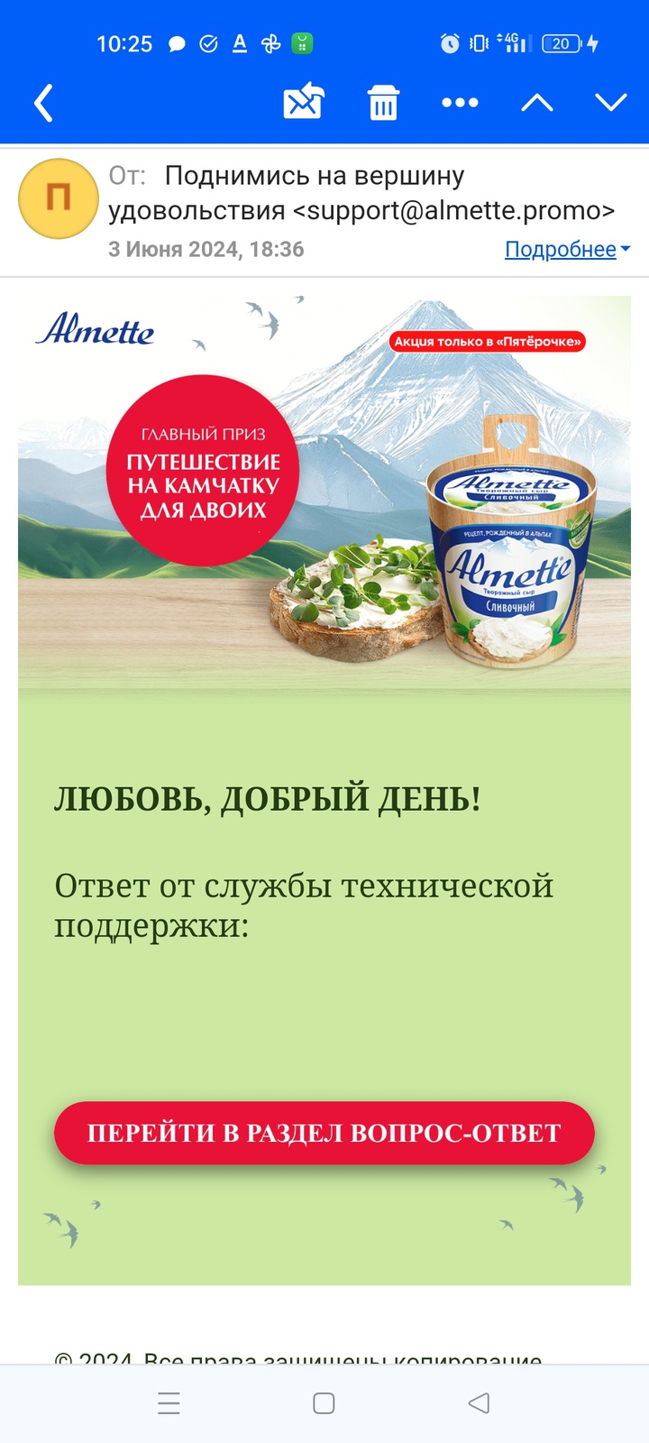Участвуйте в акции от Almette в магазинах «Пятерочка». Выиграйте путешествие на Камчатку для двоих и поднимитесь на вершину удовольствия!