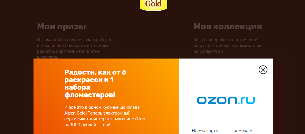 - Электронный сертификат OZON на 500 руб. и 1000 руб.;