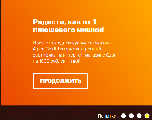 - Ежедевно нажать на 3 любых кусочка виртуальной плитки шоколада Alpen Gold по очереди;