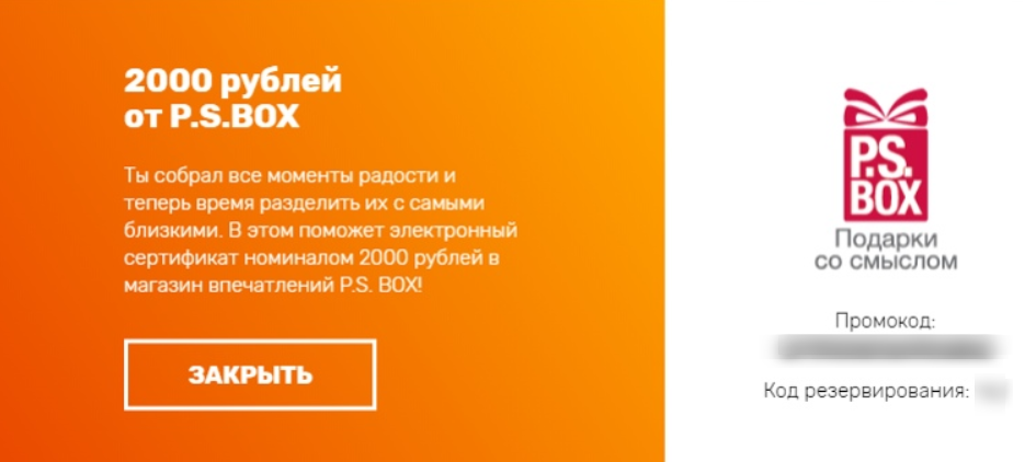 - Электронный сертификат PS box на 1000 руб. и 1500 руб. ;