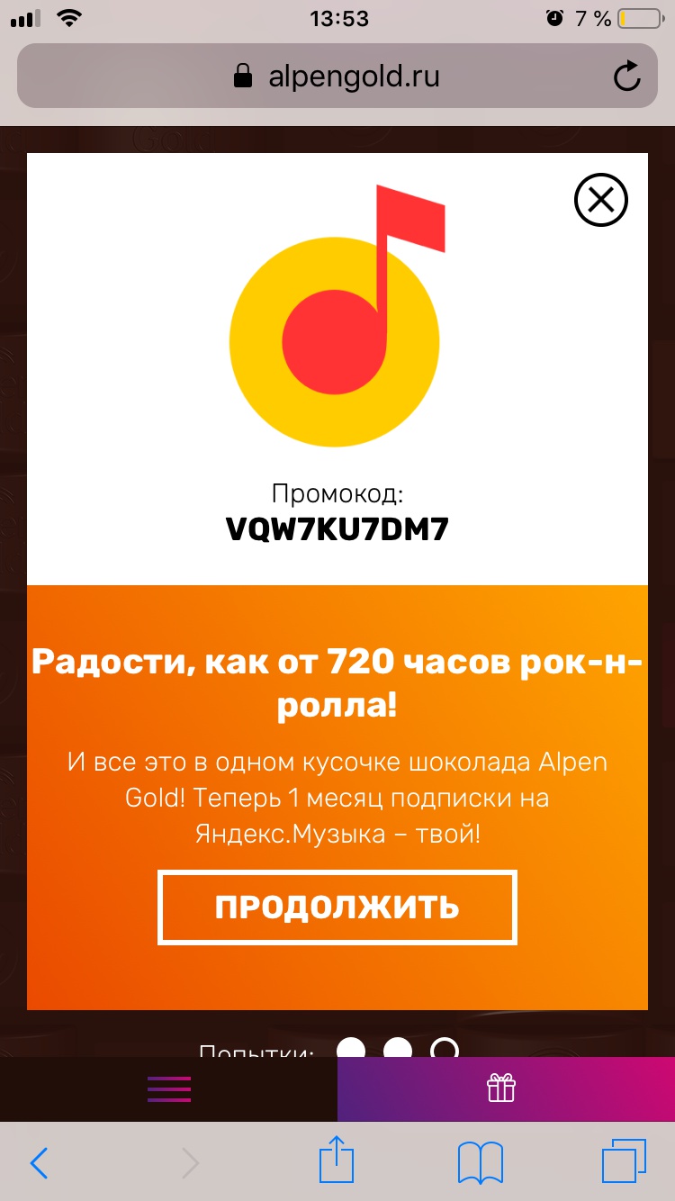 - Ежедевно нажать на 3 любых кусочка виртуальной плитки шоколада Alpen Gold по очереди;