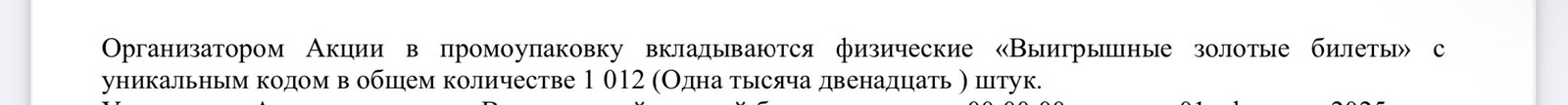 - Найдите золотой билет, зарегистрируйте код до 15 апреля на сайте акции и участвуйте в розыгрыше главных призов.