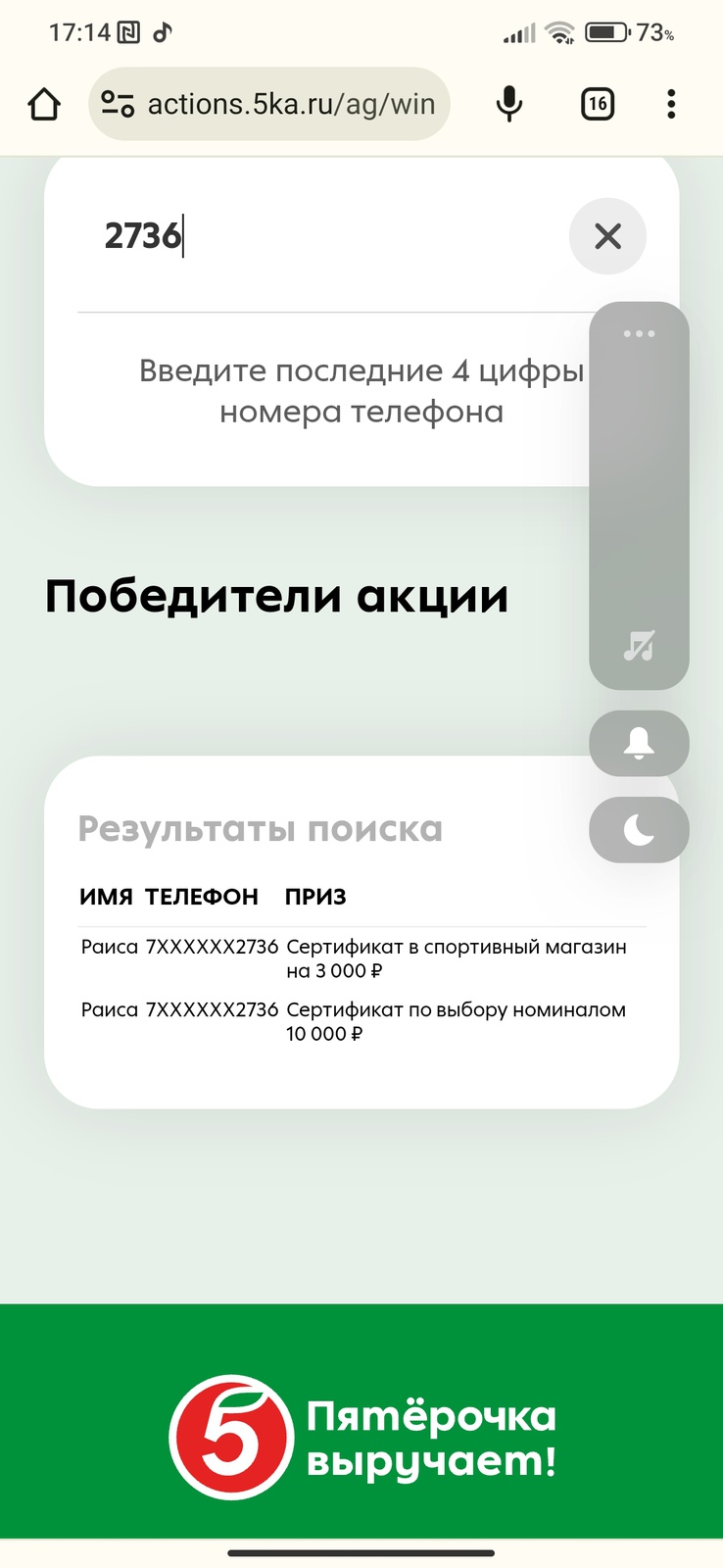 - Подарочная карта «Пятёрочка» номинал 10 000 руб. - 240 шт.