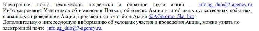 - Регистрируйте чеки в чат-боте акции: @AGpromo_5ka_bot;