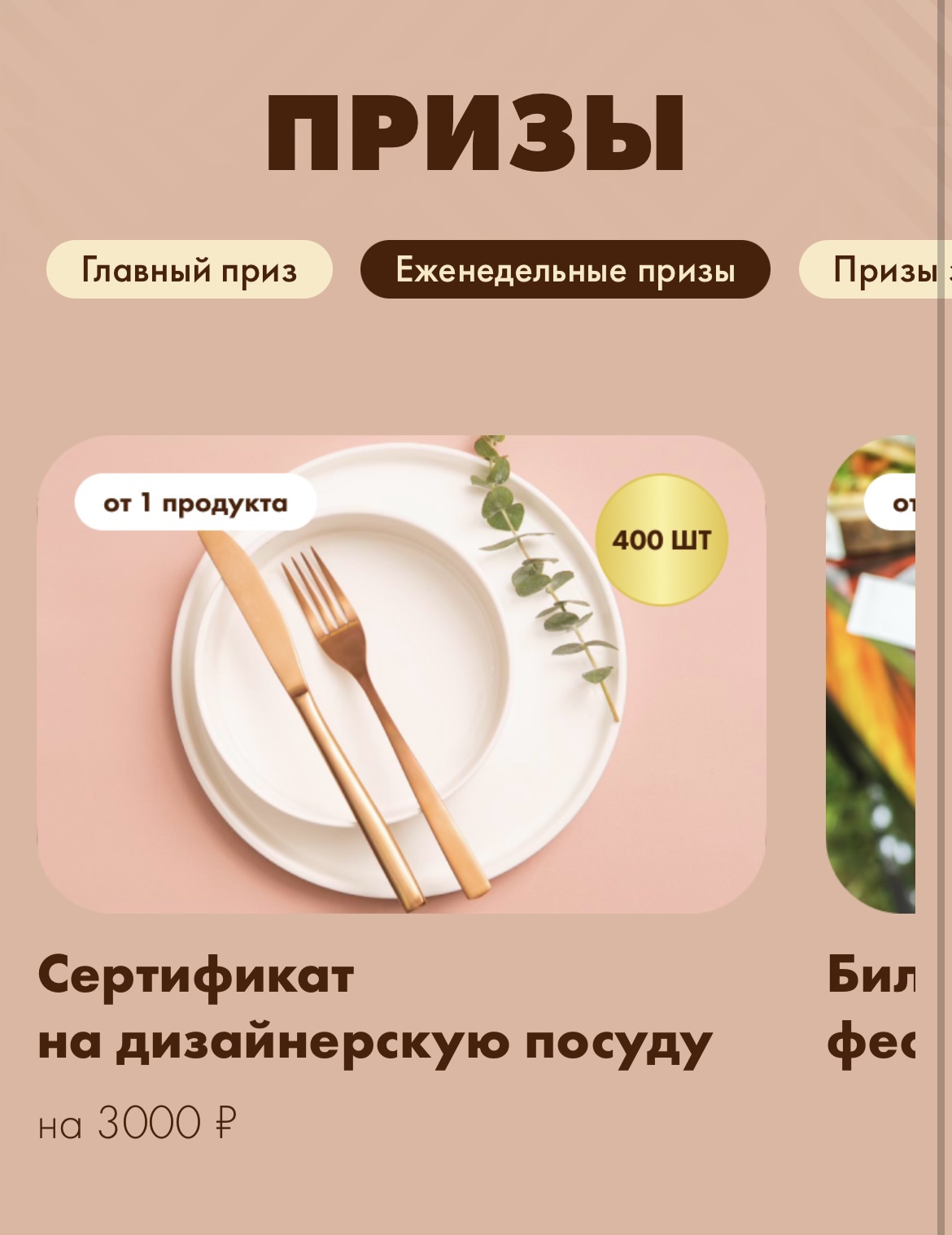 - Еженедельные призы за регистрацию от 3 продуктов: