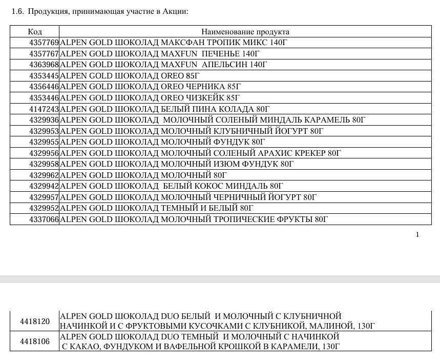 - Покупайте продукцию Alpen Gold от 1 штуки в чеке;