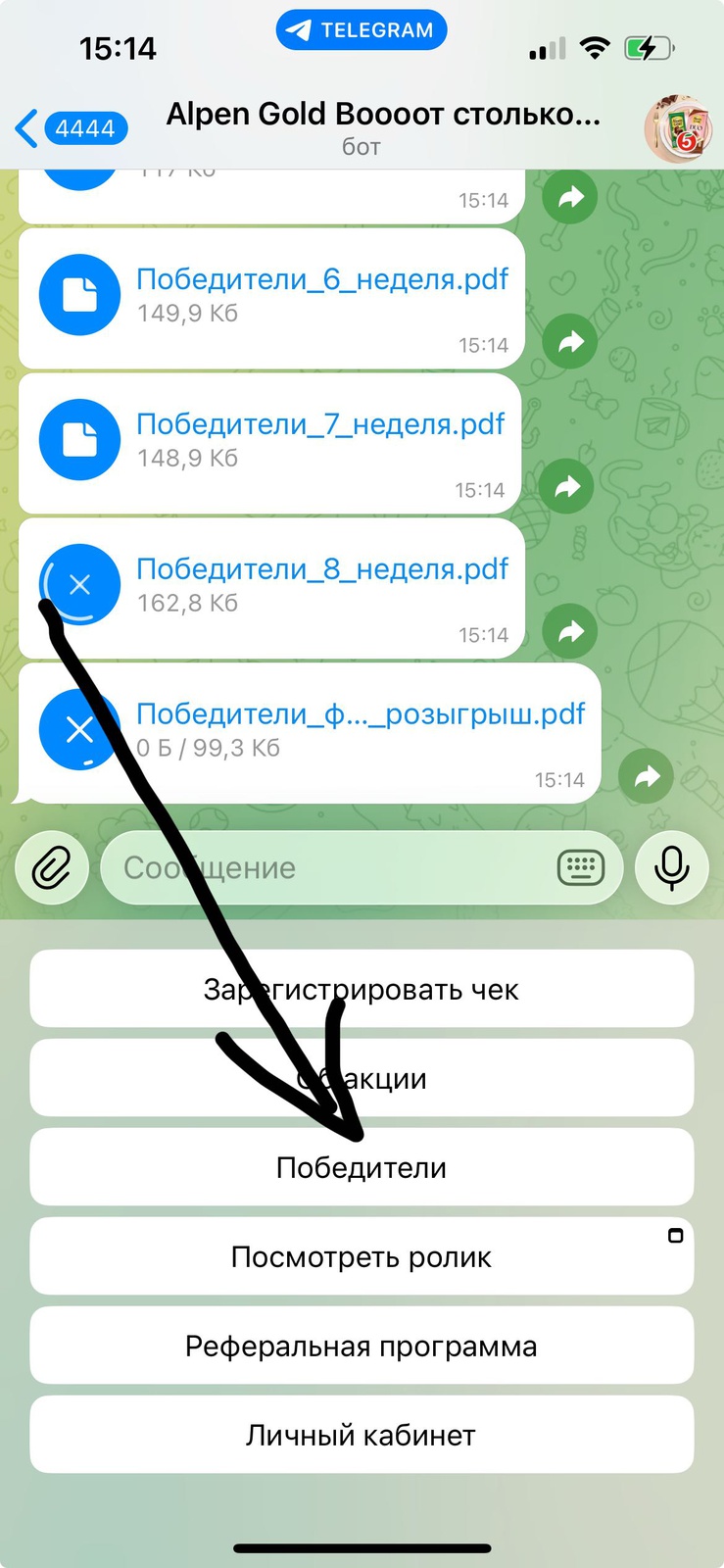 Покупайте продукцию под товарным знаком «Alpen Gold» от 1 штуки в чеке в магазине торговой сети «Пятёрочка» или в сервисе «Пятёрочка доставка» в период с 01 октября 2025 года по 30 ноября 2025 года. Получайте кассовый чек за покупку продукции. Регистрируйте чек в чат-боте в Telegram. Для участия в определении победителей программы достижений необходимо совершить покупку продукции и выполнить любое условие программы достижений.