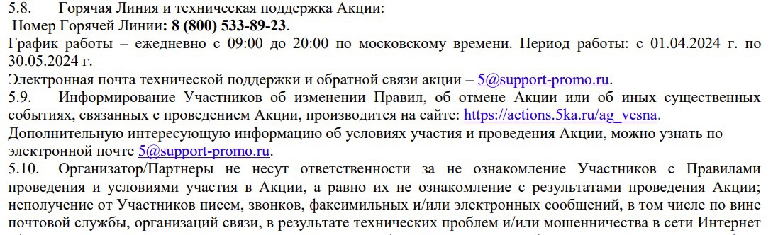 С полным списком информации для вручения приза можно ознакомиться в правилах акции.
