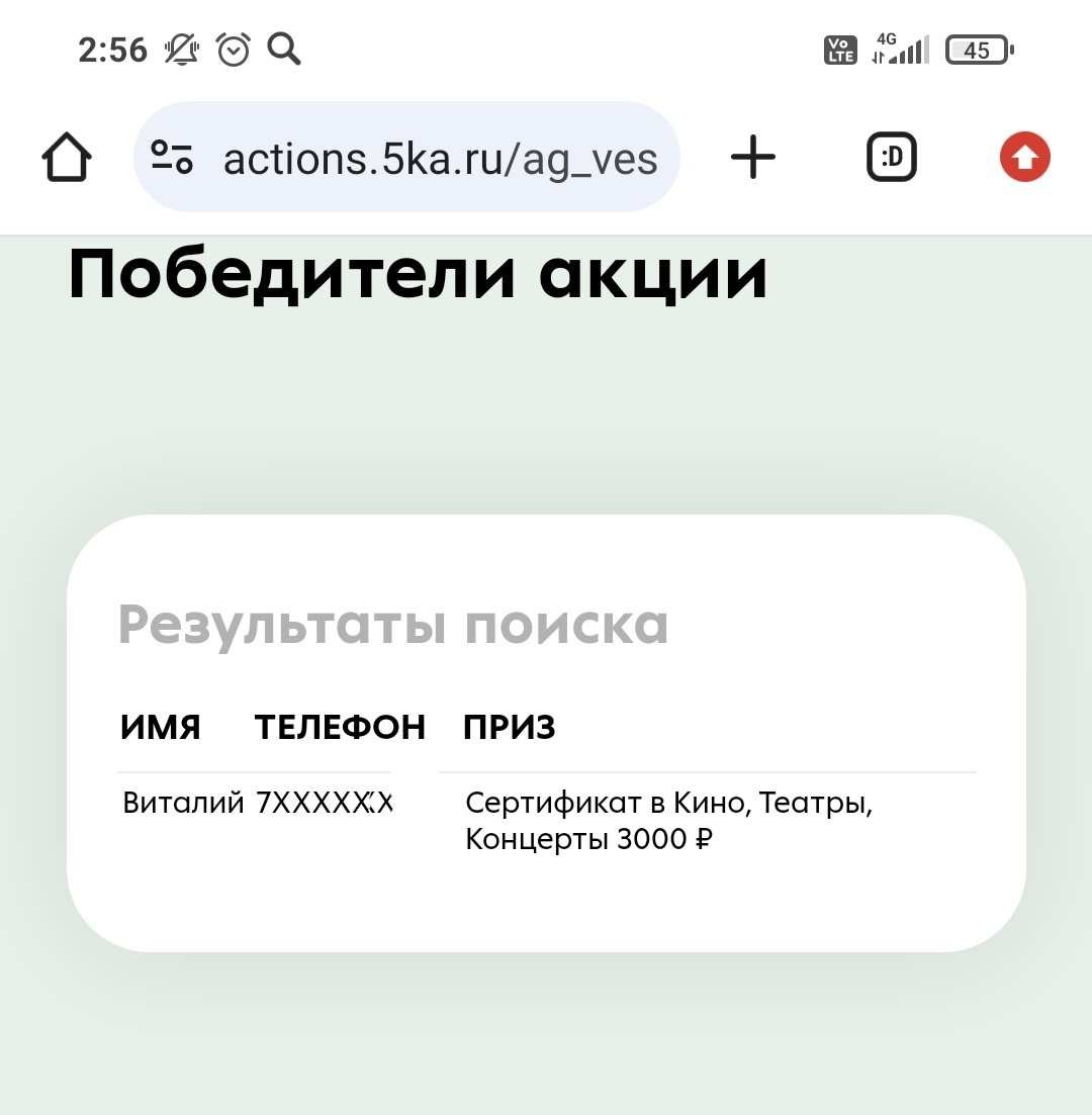 ВЫ ВЫИГРАЛИ ОДИН ИЗ ПРИЗОВ АКЦИИ!