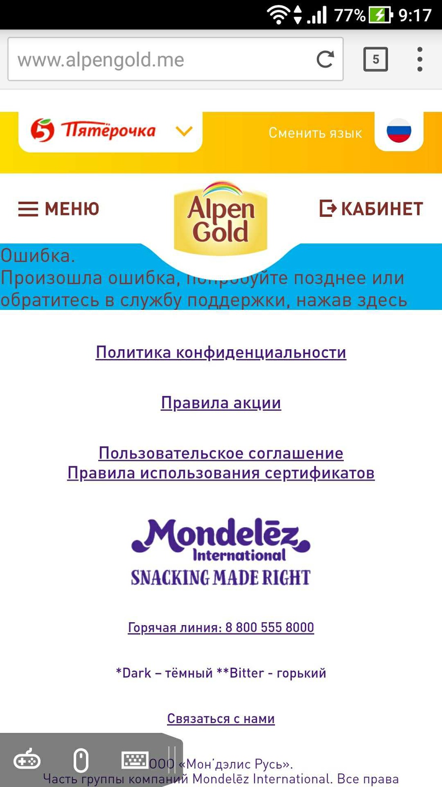 Организатор акции: ООО «Мон’дэлис Русь»