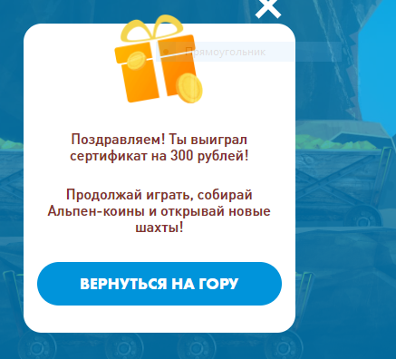 - За каждую 1 упаковку продукции в зарегистрированном чеке участник получает 1 «Альпен-коин», за каждый уровень открывается доступ к розыгрышу Призов.