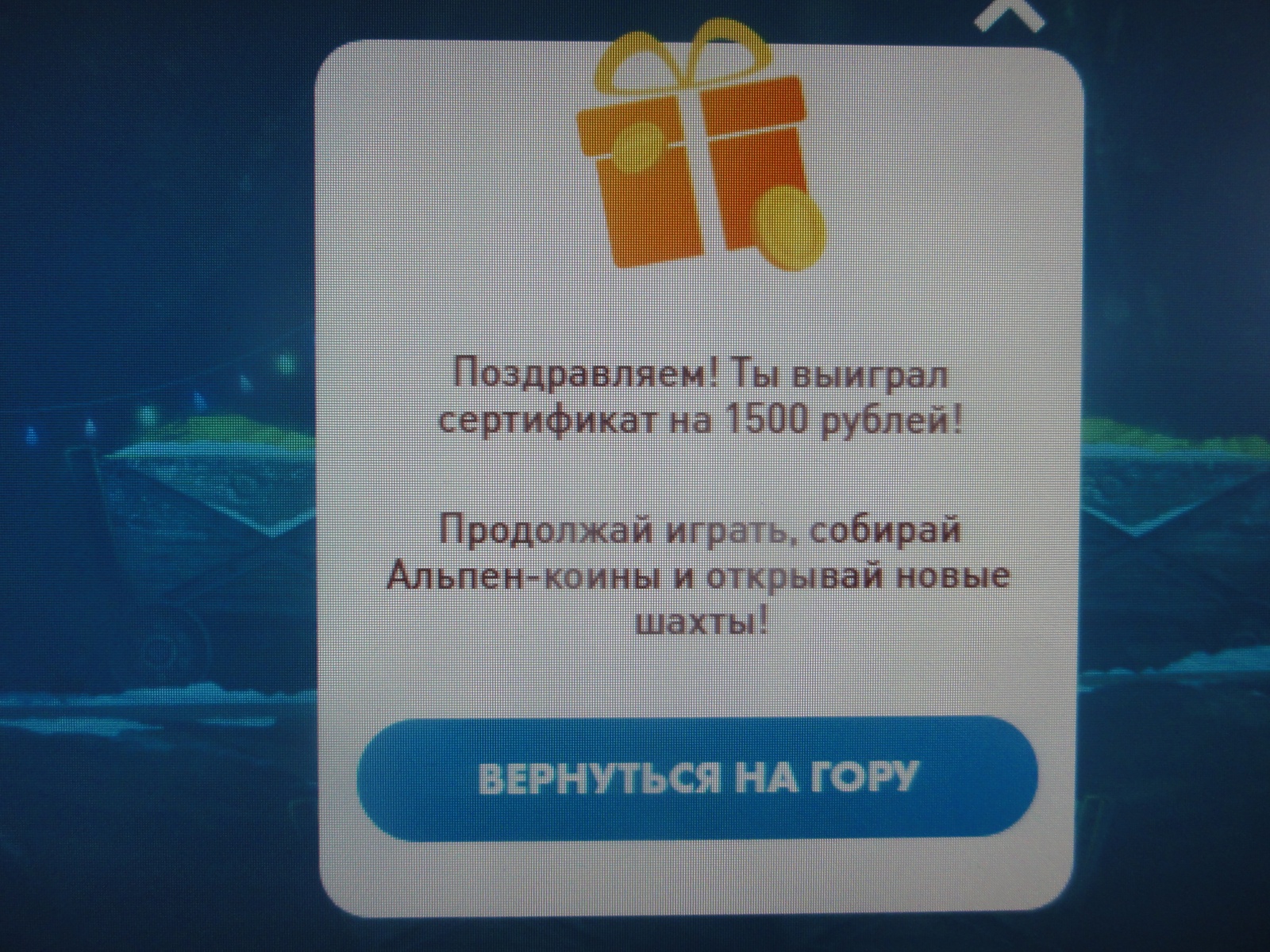 До этого в рекламе альпена ещё увидела что нарисованы в призах серты по 1500, но не придала значения)