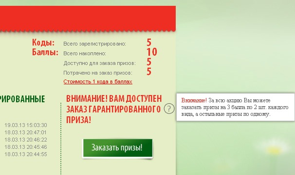 - Зарегистрируй код: по sms на номер 5400, на сайте www.arlanatura-promo.ru или по телефону горячей линии 8-800-555-05-09;