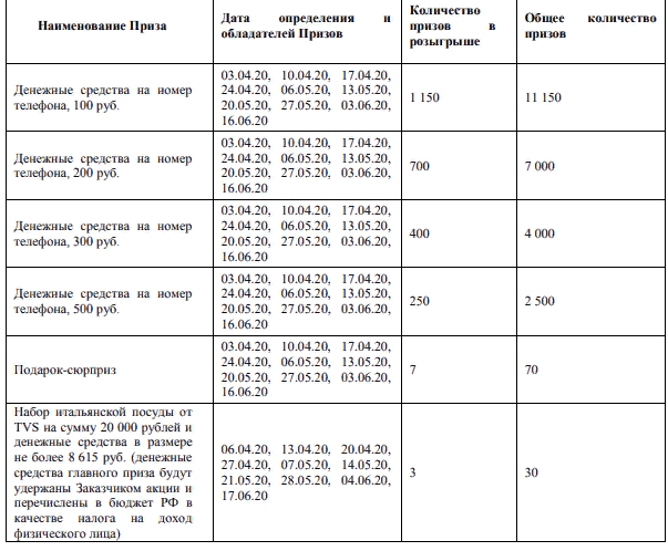 - 30 главных призов - "Набор итальянской посуды от TVS на 20 000 рублей";