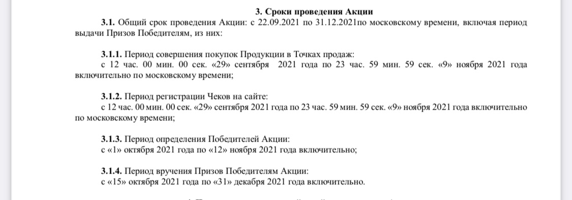 - Общий срок проведения Акции: с 29.09.2021 по 31.12.2021 по московскому времени, включая период выдачи Призов Победителям;