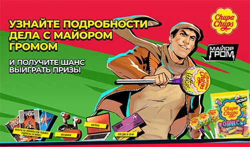 С 5 мая 2025 года участвуйте в акции от Чупа Чупс. Узнайте подробности дела с майором громом и получите шанс выиграть призы.