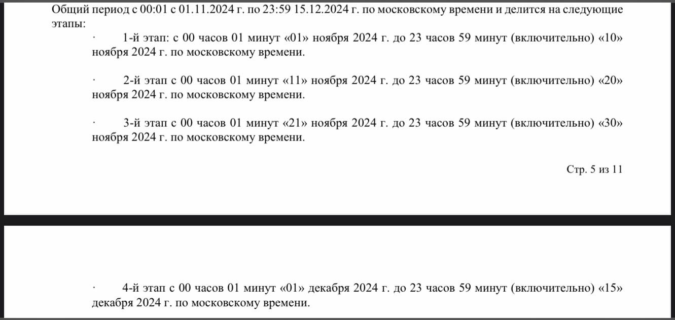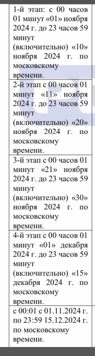 - Общий срок проведения Акции – Акция проводится в период с 00:01 с 01.11.2024 г. по 23:59 15.02.2025 г. по московскому времени (включительно), включая период выдачи призов победителям;
