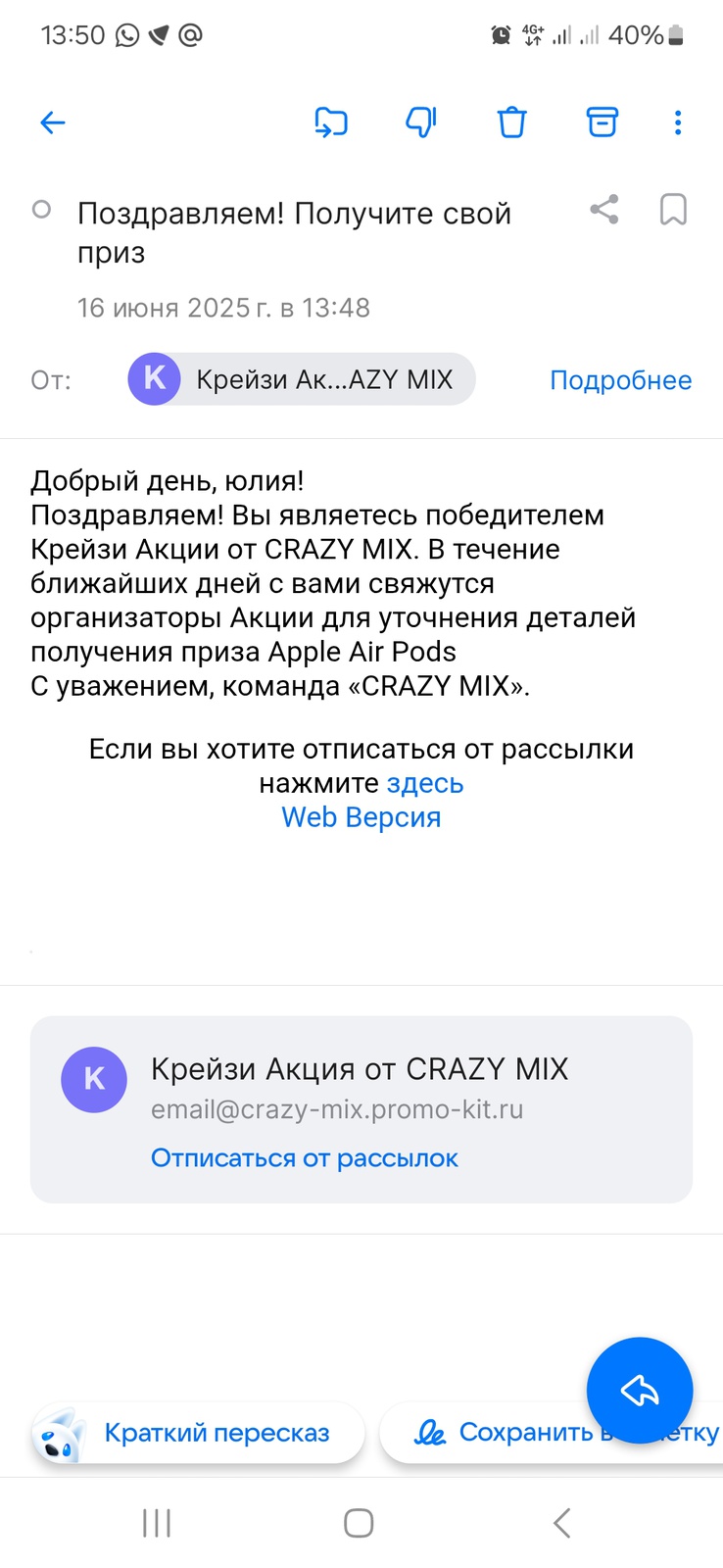 С 1 мая 2025 года покупайте напитки Crazy Mix в магазинах «Магнит», регистрируйте чек и участвуйте в розыгрыше призов.