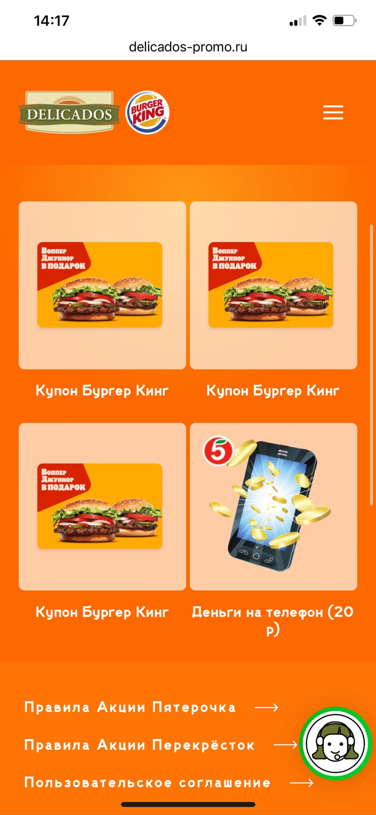 - Купон на «Воппер Джуниор» - 1 600 шт.