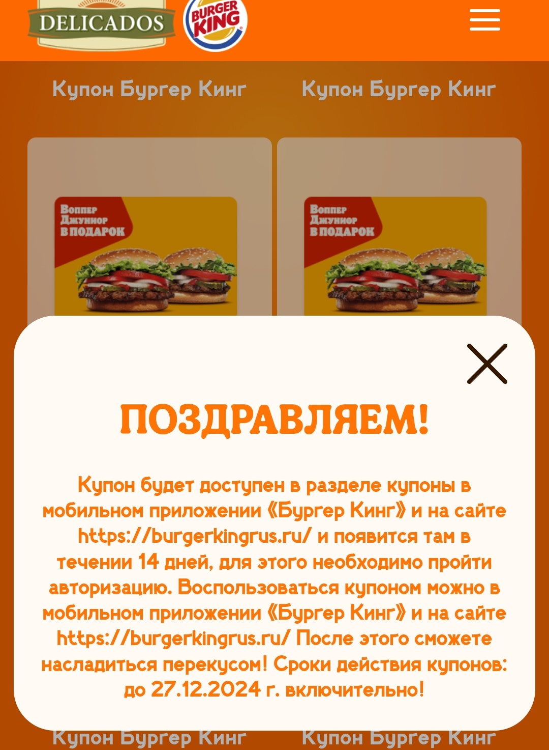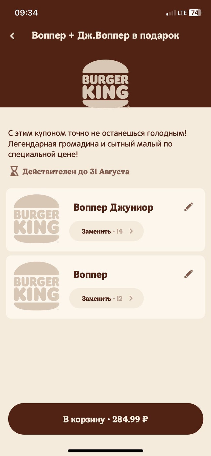А то у меня в Личных купонах только "Воппер+Воппер Дж" по спец цене до 31 августа..., это же не он?