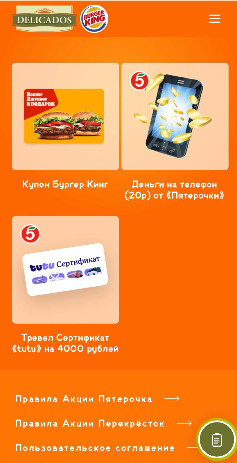 - Правила акции в магазинах «Пятерочка»: https://drive.google.com/file/d/1amCG3XQUsRVSpKpvEjxC7SmoMjrbJGKH/view