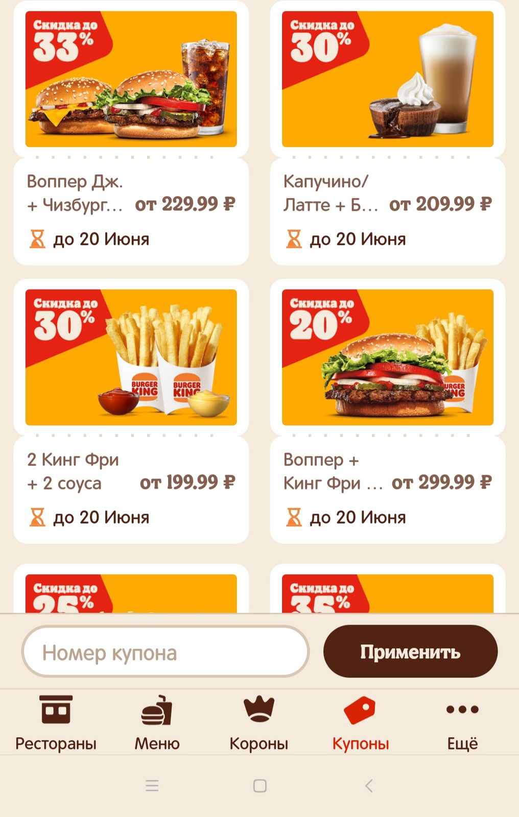 - Купон на «Воппер Джуниор» - 7 400 шт.