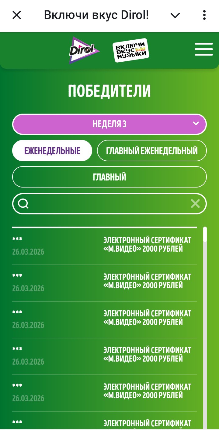 - В акции принимает участие любая продукция Dirol, приобретённая в любых магазинах сети «Пятёрочка» и «Перекрёсток» в сроки проведения акции.