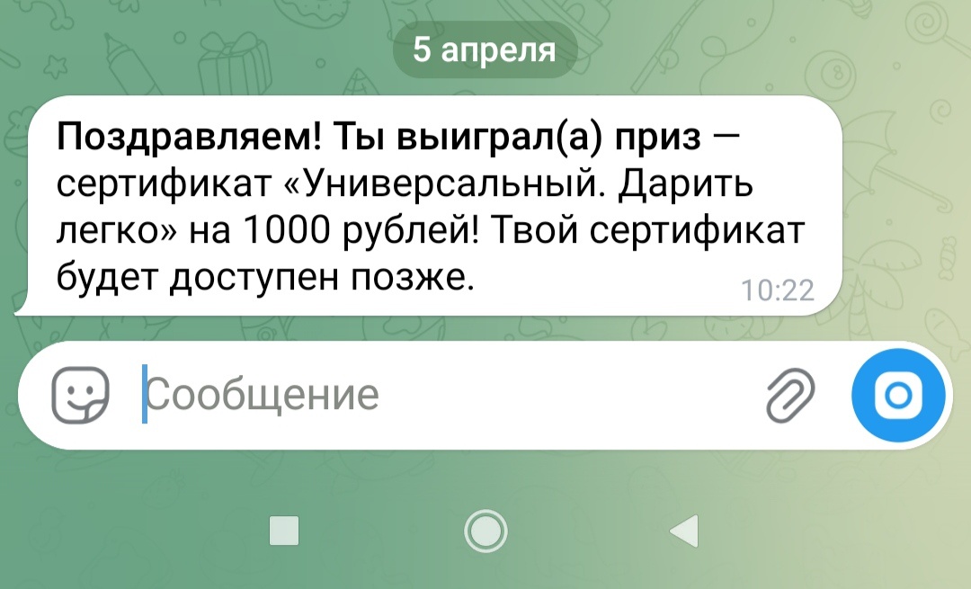 - Сертификат «Универсальный» на 1000 руб.;