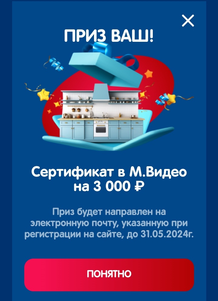 - Главный приз - электронный подарочный сертификат на покупку кухни от Мебельной Фабрика «Мария» общей стоимостью до 840 000 руб.