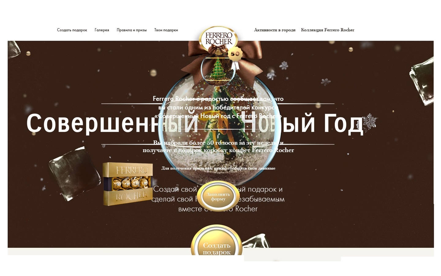 "Ferrero Rocher с радостью сообщает вам, что вы стали одним из победителей конкурса «Совершенный Новый год с Ferrero Rocher»