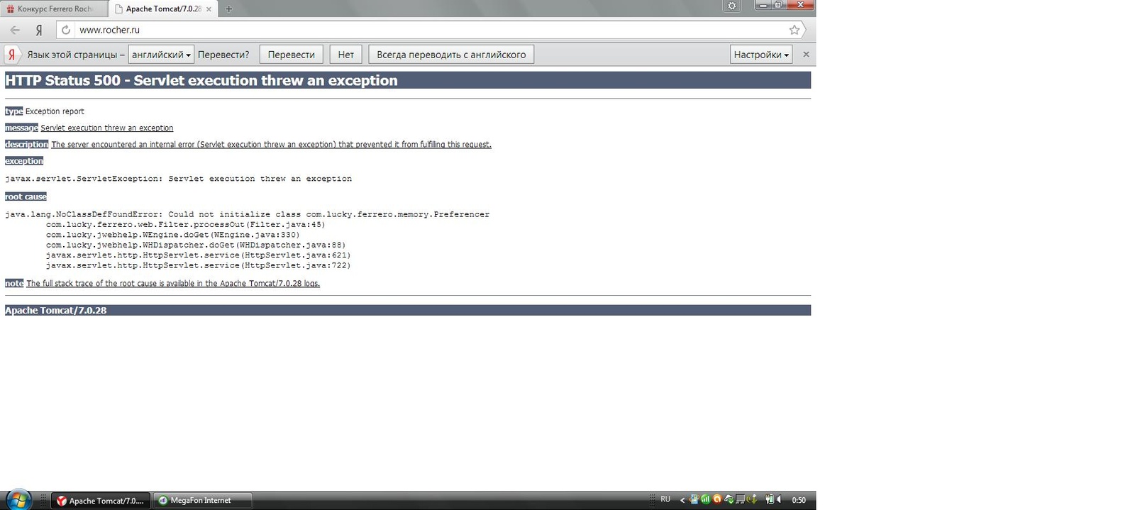 note The full stack trace of the root cause is available in the Apache Tomcat/7.0.28 logs.