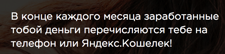 - В конце каждого месяца заработанные тобой деньги перечисляются тебе на телефон или Яндекс.Кошелек;