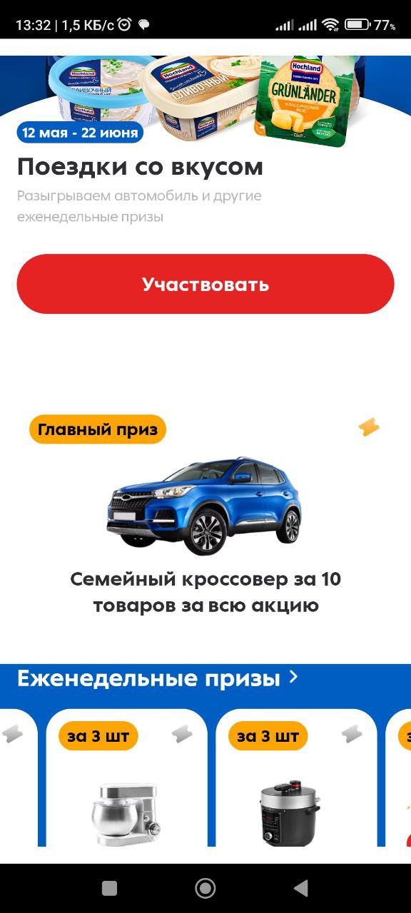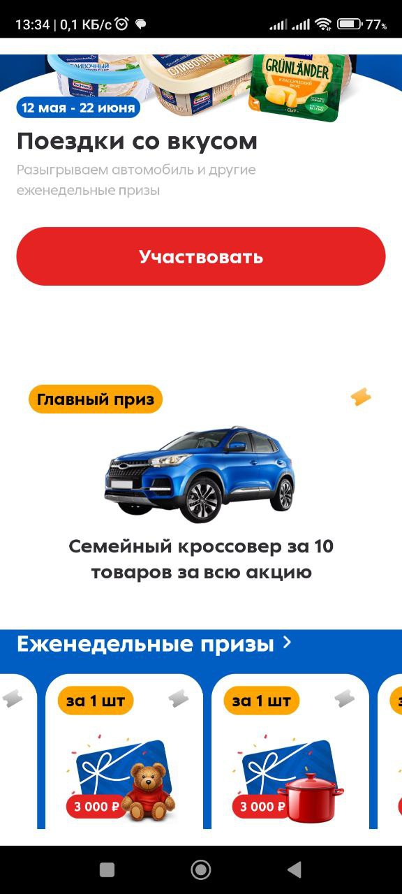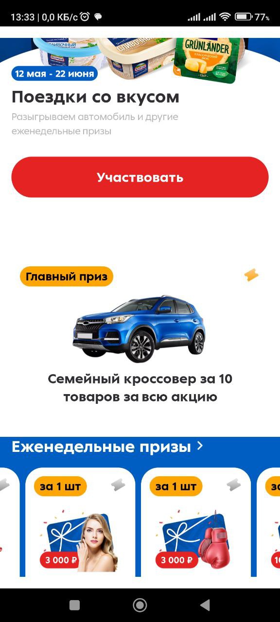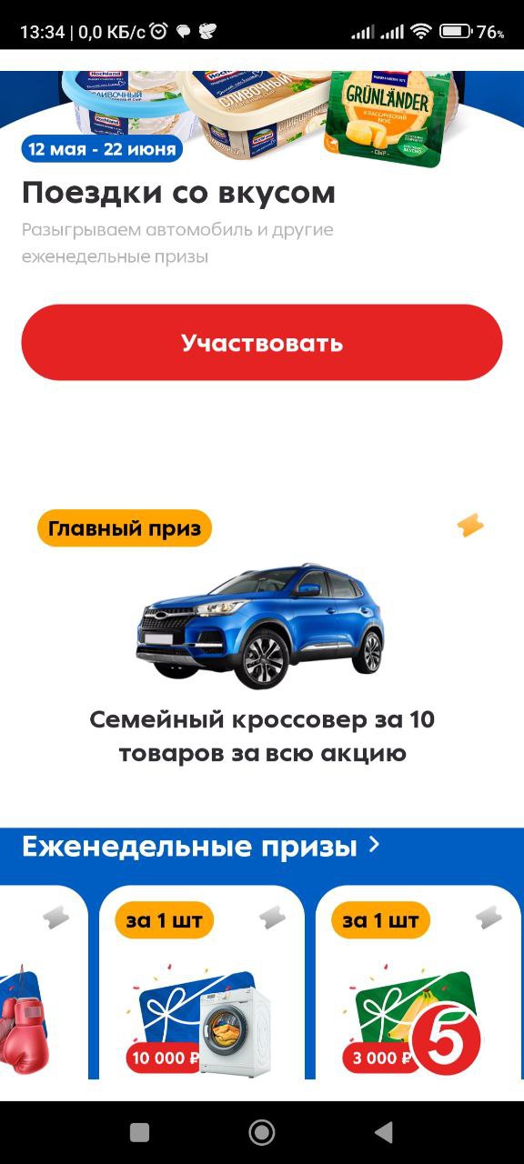 - Активируйте участие в розыгрыше в приложении Пятёрочка;
