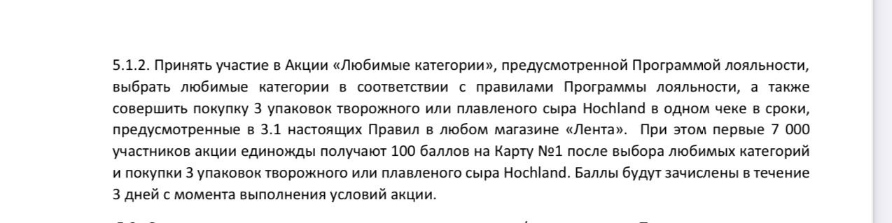 - 100 баллов на Карту №1 получат первые 7 000 участников после выбора любимых категорий и покупки 3 упаковок творожного или плавленого сыра Hochland;