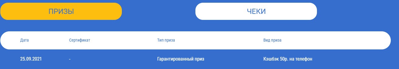 - Гарантированный приз - На выбор участника бонусы на счет карты лояльности «Лента» либо Кэшбэк в виде зачисления денежных средств на номер телефона участника в сумме 50 руб.