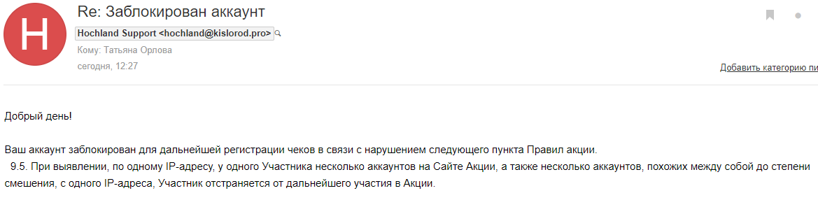 Татьяна купила, зарегистрировала, у неё приняли. Ещё у нескольких эти чеки отклонили, они начали писать в поддержку, разбираться