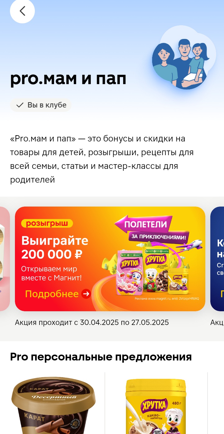 - Скачайте мобильное приложение Магнит и вступите в клуб «рго.мам и пап» или будьте его участником;
