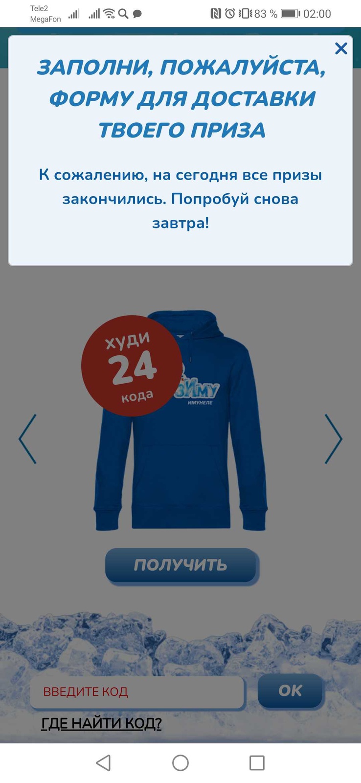 - Участник сможет получить накопительные призы собрав определенное число кодов: