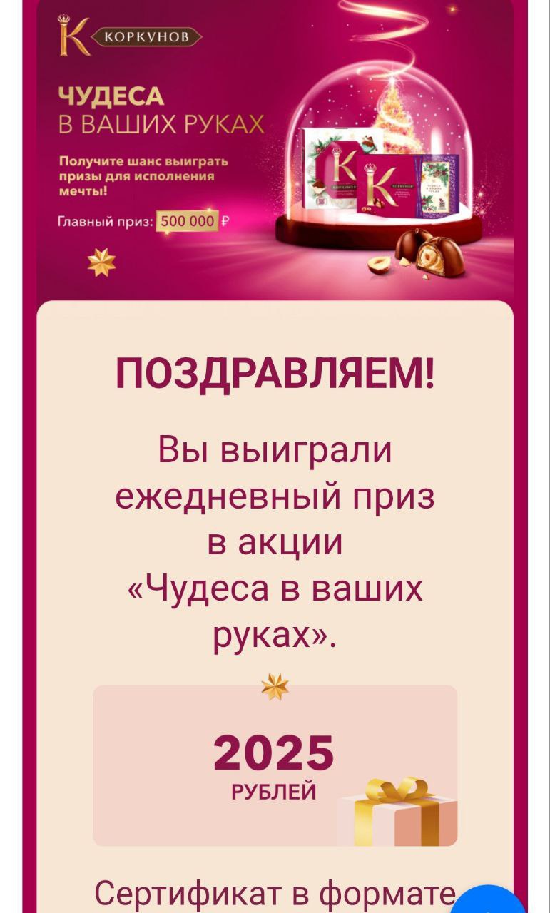 Внимание! Данная акция завершилась. Перейти на текущую акцию Коркунов «У волшебства есть вкус» 2025 →