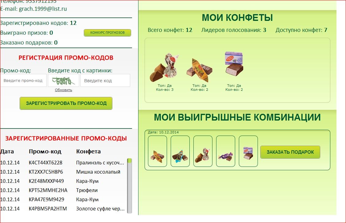 - Собери выигрышную комбинацию из 5-ти «конфет» лидеров голосования и получи подарок!