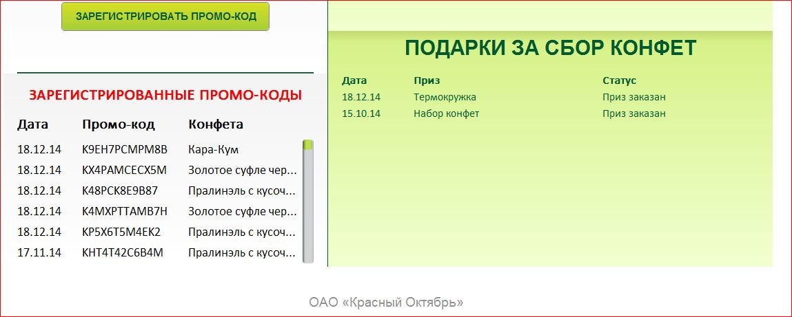 Участвуйте в акции от «Красный Октябрь», покупайте конфеты со стикером акции, регистрируйте коды и участвуйте в розыгрыше призов!