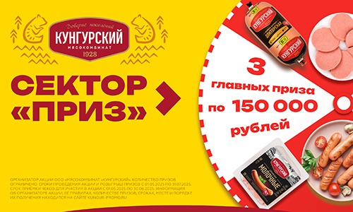 Покупайте продукцию бренда «Кунгурский» на сумму от 100 рублей, регистрируйте чек, участвуйте в розыгрыше призов.