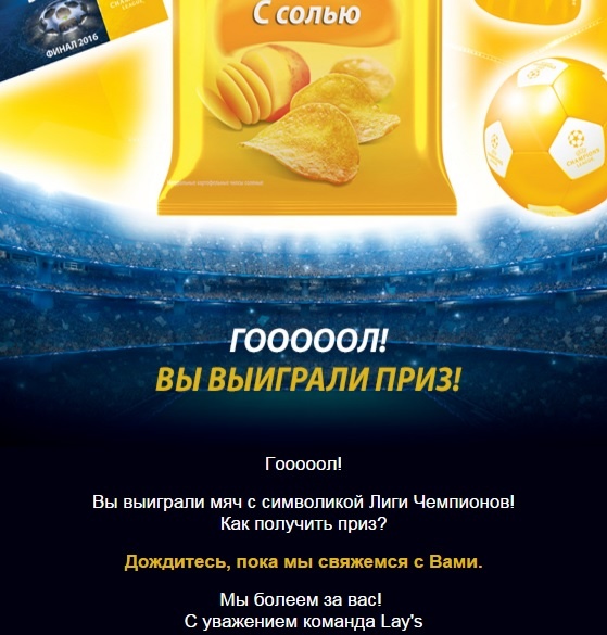 Участвуй в акции от Lay's, выиграй билеты на лигу чемпионов и другие призы!