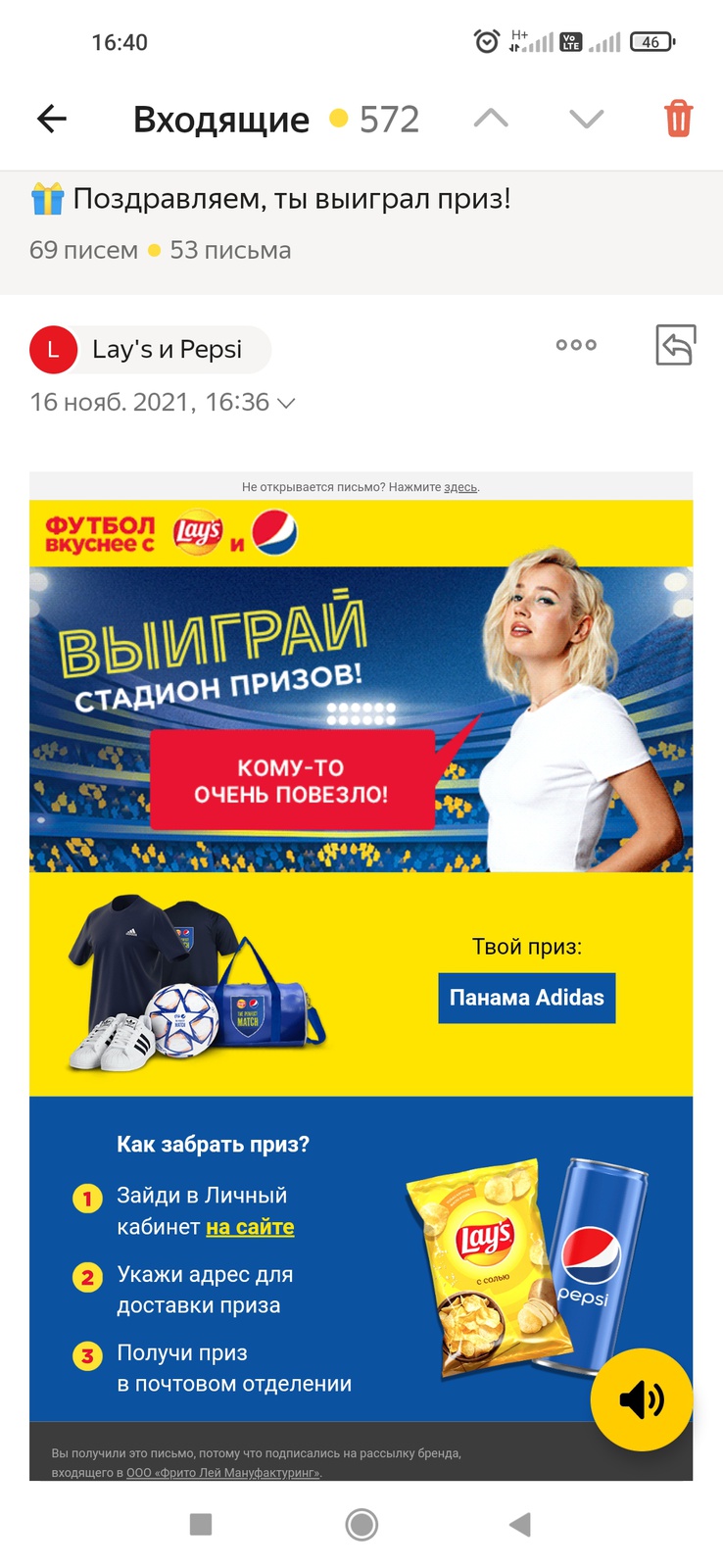 С 1 апреля 2021 года участвуй в акции от Lay's и Pepsi. Покупай продукцию, участвующую в акции и выиграй стадион призов!