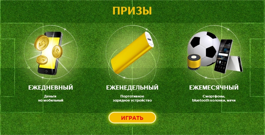 - Занимай места на стадионе и получай гарантированные призы каждый день!