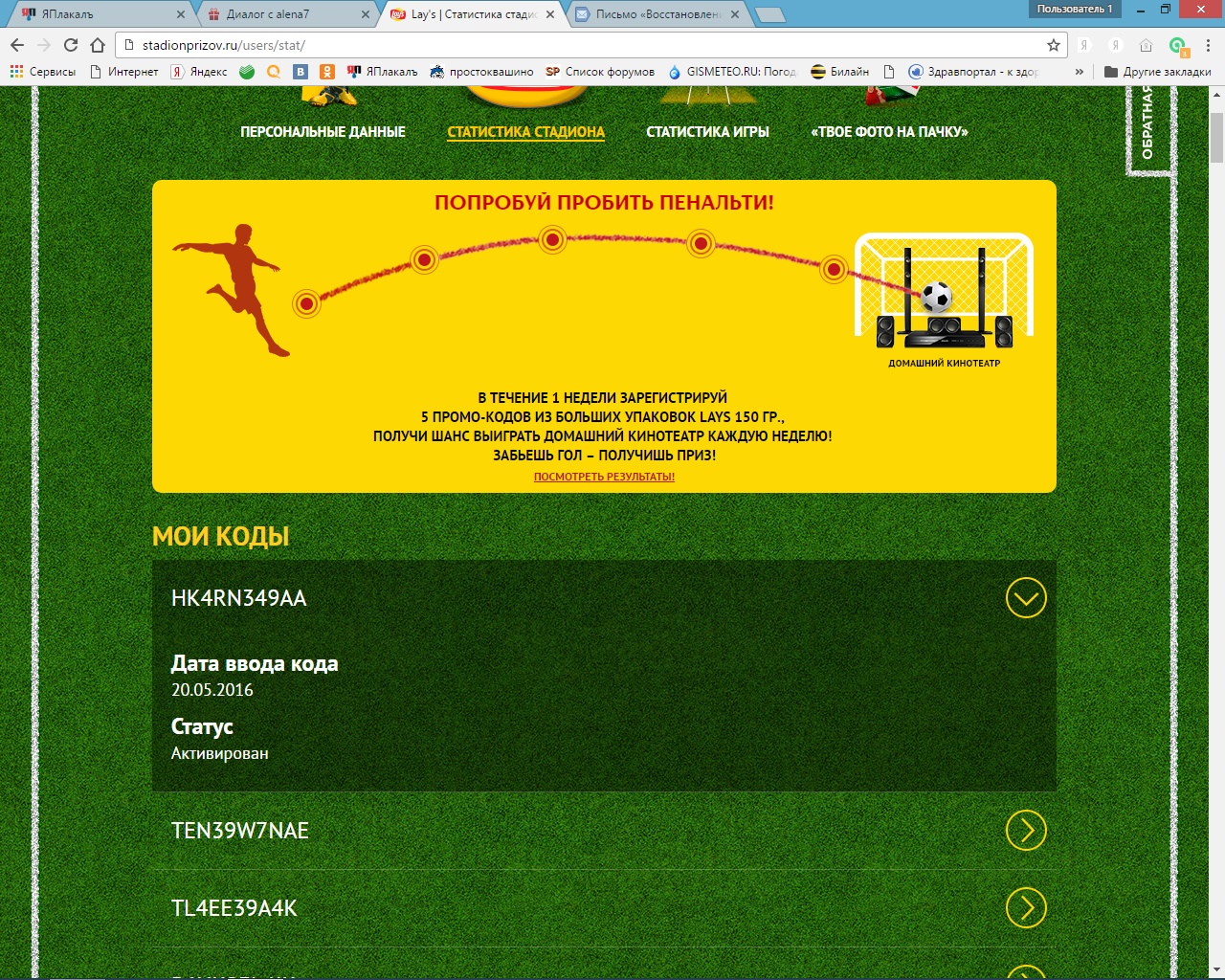 - Зарегистрируй его на сайте www.stadionprizov.ru