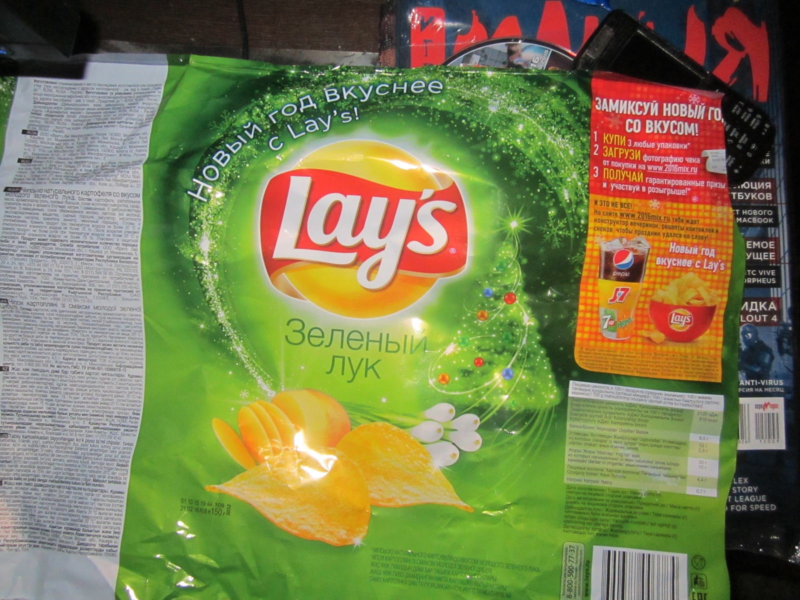 - Купи 3 любые 3 товара участвующих в акции: Lay's, Pepsi, J7, Mirinda, 7UP ;