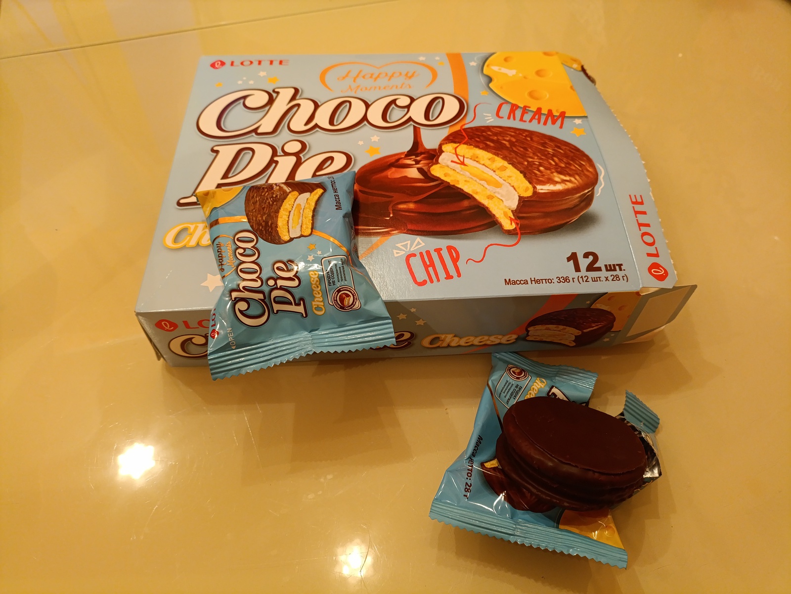 - Печенье прослоенное глазированное «Лотте Чокопай» «Lotte Chocopie Cheese» со вкусом сыра, 12 шт, вес 336 гр.